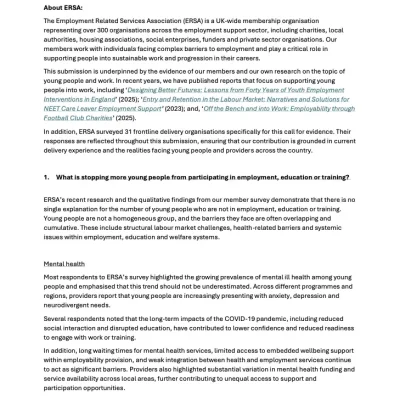 ERSA represents the employment support sector, which helps jobseekers find worthwhile jobs and achieve sustainable careers. Our 300+ members span the private, public and voluntary sectors, from multi-national businesses to charities and community enterprises.